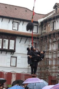 काठमाडौं, १८ असोज । आज हनुमानढोखाको नाशल चोकमा ओमवहाल टोलका ज्यापूसमुदायले गरेको धुन्या प्रस्तुती । धुन्या घुमाउने प्रस्तुती नेवार समुदायको विशिष्ट मौलिक कला हो । विशेष गरी ज्यापू समुदायले मात्र यस्तो कला प्रस्तुत गर्ने गरेको पाइन्छ । तस्बिर : राजन मर्हजन