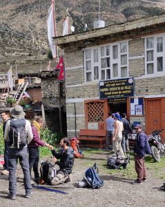 ( मनाङको एक्याप कार्यालयमा नाम दर्ता गराउन पालो पर्खिरहेका पर्यटकहरु ।)
