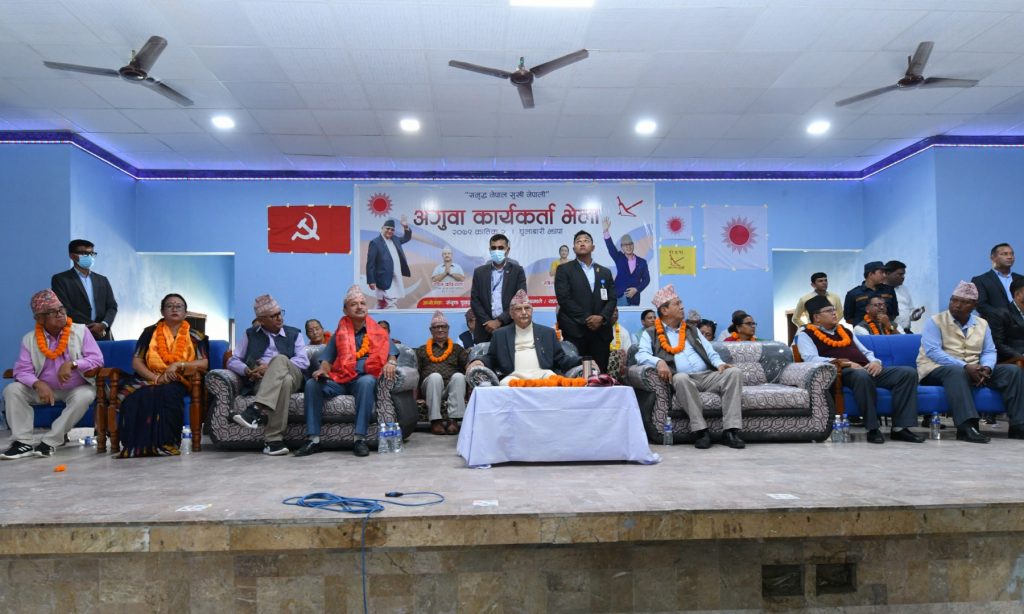 आज क्षेत्र नं १ को धुलाबारीमा आयोजित अगुवा कार्यकर्ता भेला तथा पार्टी प्रवेश कार्यक्रमलाई अध्यक्ष ओलीले सम्बोधन गर्नुभएको छ । आजै दमकको रोयल पार्टी पार्टी प्यालेसमा क्षेत्र नं ५ स्तरीय बृहत कार्यकर्ता भेटघाट कार्यक्रम आयोजना गरिएको छ ।