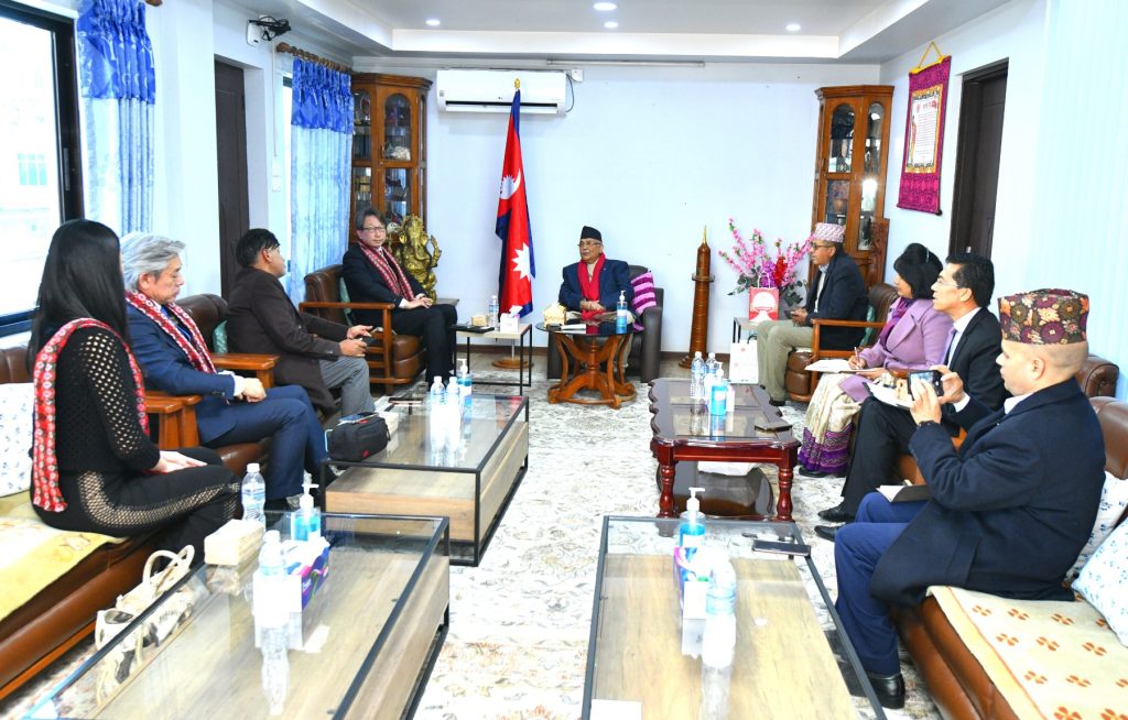 काठमाडौं, २८ पुस । नेकपा (एमाले) अध्यक्ष एवं पूर्व प्रधानमन्त्री केपी शर्मा ओली र जापानका पूर्व राज्यमन्त्री मासाकी तायराबिच भेटवार्ता भएको छ । एमाले अध्यक्ष ओलीको नीजि निवास बालकोटमा करीब दुई घण्टा भएको भेटघाटमा नेपाल र जापानबिचको कुटनीतिक सम्बन्ध, आगामी दिनमा गर्न सकिने सहयोग आदन–प्रदानलगायतका विषयमा केन्द्रित भएर छलफल भएको थियो । एमाले परराष्ट्र मामिला विभाग सचिव डाक्टर अञ्जान शाक्यका अनुसार भेटघाटको सुरुमै राज्यमन्त्री तायराले आफूहरुको टोलीलाई निवासमै बोलाएर भेट गरेकोमा खुशी व्यक्त गर्नुभएको थियो ।
