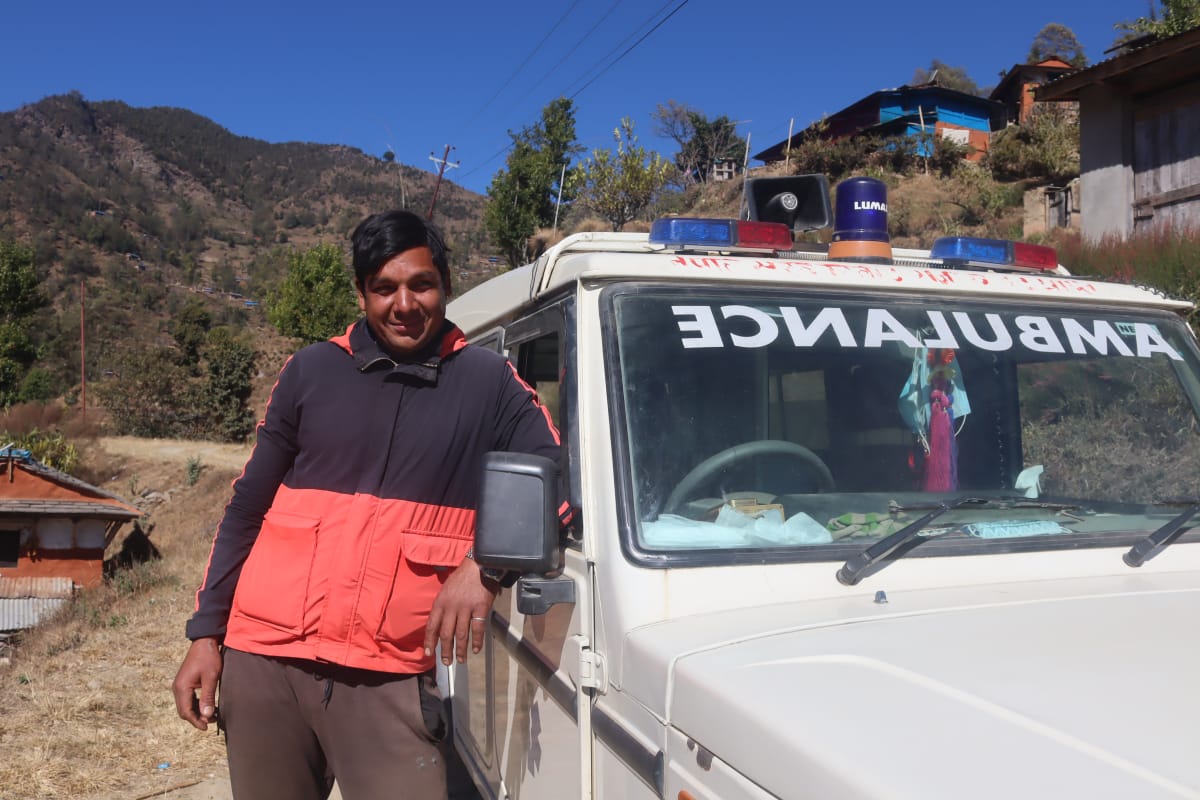 गुल्मीका वडासदस्य थापा निःशुल्क एम्बुलेन्स चलाउँदै