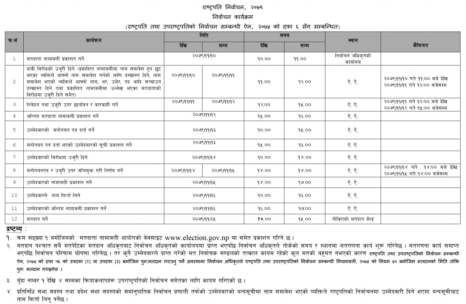 राष्ट्रपति र उपराष्ट्रपतिको निर्वाचन कार्यतालिका सार्वजनिक (कार्यतालिका सहित )