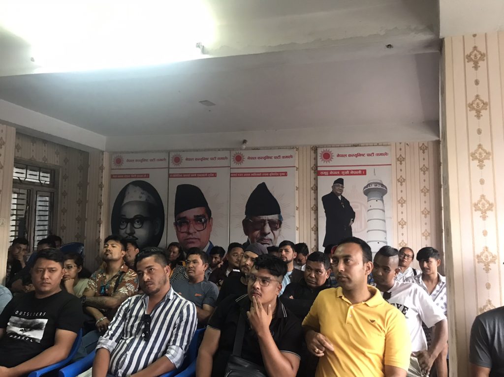 बैठक महानगर कमिटीका अध्यक्ष दिपेश सुधाकरको अध्यक्षता तथा राष्ट्रिय युवा संघ नेपाल केन्द्रीय सचिव तथा महानगर उत्प्रेरक खेम राज शर्माको प्रमुख आतिथ्यतामा पुतलीसडकस्थित पार्टी कार्यालयमा बसेकाे हाे ।