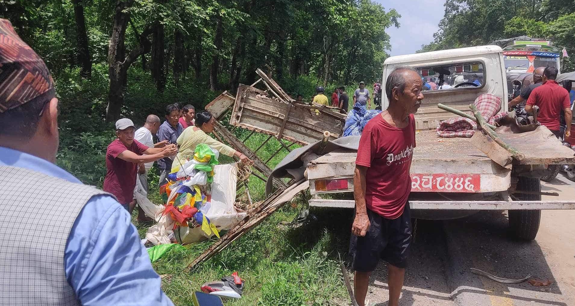 पूर्व-पश्चिम राजमार्गकाे टिकौली जंगलमा सवारी साधन एक आपसमा ठाेक्किएर २० जना घाइते