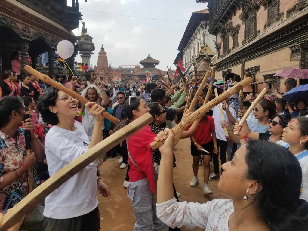 घिन्ताङघिसी ट्वाक् गर्दै भक्तपुरमा गाईजात्रा
