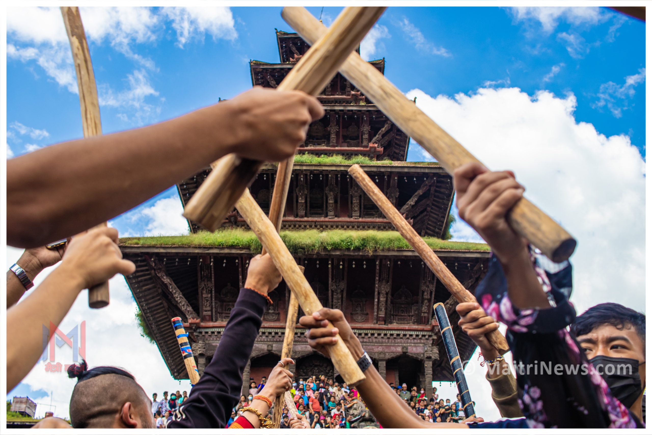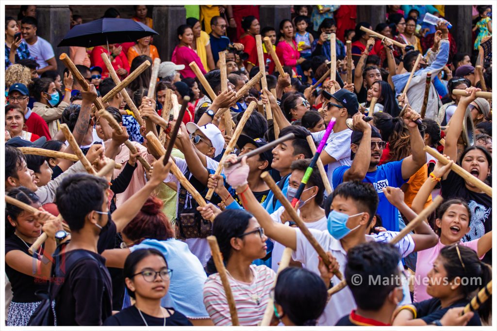 जात्रा समापनका क्रममा तौमढीबाट साँझ परालबाट बनेको तमाचा र त्यससँगै भैरव नाचसमेत निकालिन्छ । तौमढीस्थित भैरव मन्दिरबाट निकालिएको तमाचा, यसपछि सोही टोलभित्रभरिबाट निकालिएको अन्य तमाचा र सबभन्दा पछि नकिं अजिमाको तमाचा निकाली वंशगोपाल हुँदै विभिन्न ठाउँमा परिक्रमा गरी लाय्कूमा तीनपटक परिक्रमा गरेपछि आजको जात्रा समापन गरिन्छ ।