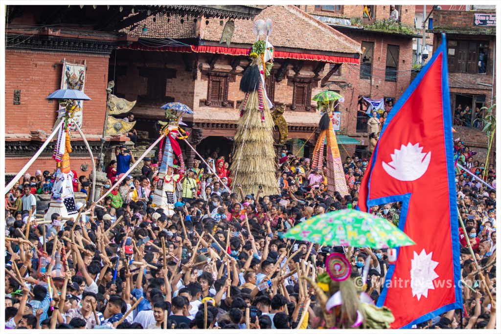 आर्थिक अवस्था कमजोर हुनेले पनि कुमार–कुमारी बनाएर घुमाउने तथा जिउँदो गाई मात्रै भए पनि घुमाउने परम्परा रहेको छ । विभिन्न घरबाट निकालिएको जात्रा दरबार स्क्वायर, वालाखु गणेश, चोछेँ, भोलाछेँ, महालक्ष्मी, नागपोखरी, क्वाठडाँै, नवदुर्गास्थान, सूर्यमढी, दत्तात्रय, सुकुलढोका, गोलमढी, तौमढी, पोटरीस्क्वायर, वंशगोपाल, इताछेँ, खौमाको परिक्रमा गरिन्छ ।