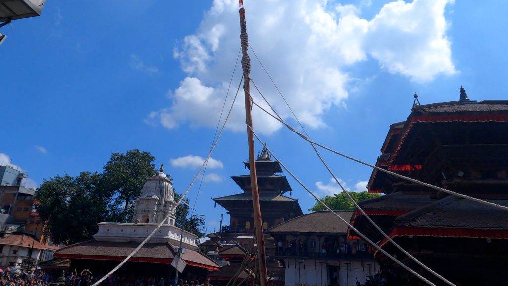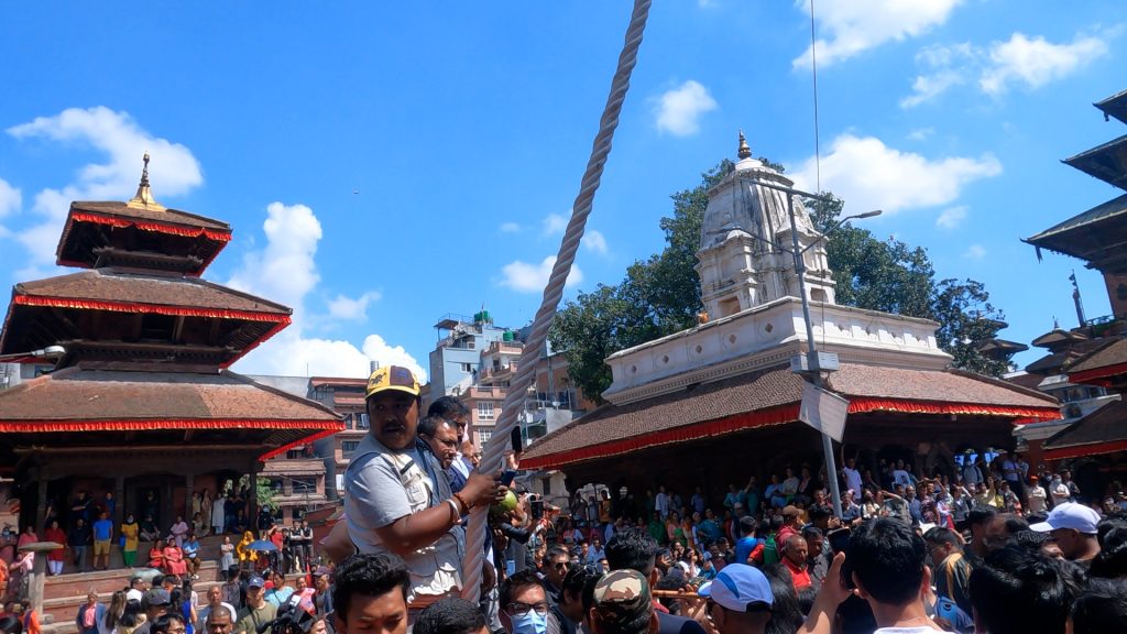 समितिले दिएको साइतमा आज बिहान मानन्धर समूहले इन्द्रध्वजोत्थान गरेको हाे ।