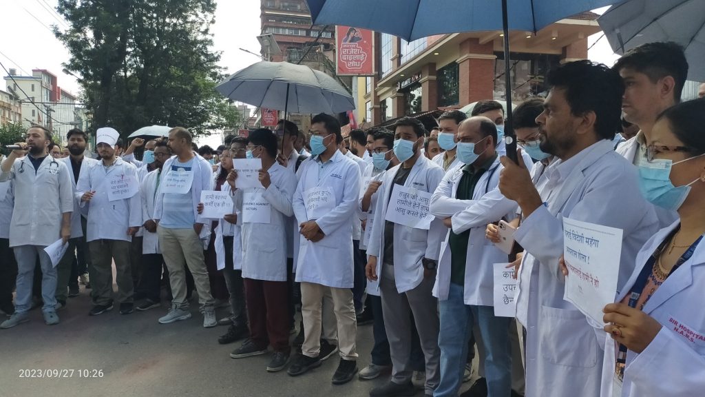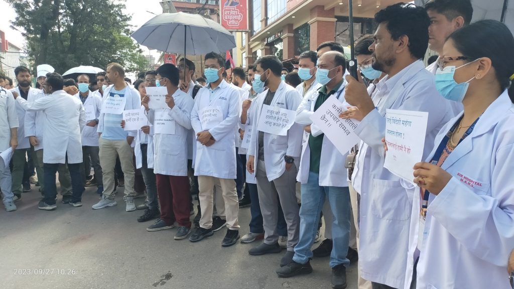 चिकित्सकहरूमाथि बारम्बार आक्रमण भएको भन्दै चिकित्सकहरु आन्दोलित भएका हुन् । आन्दोलनरत चिकित्सकहरूले दोषीलाई कारबाही नभएसम्म आन्दोलन नरोकिने बताएका छन् । उनीहरूले विभिन्न नारा लेखिएका व्यानरसहित नाराबाजी गर्दै गृहमन्त्री र स्वास्थ्य मन्त्रीकाे राजीनामा मागेका छन् ।