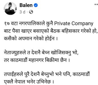 मेयर बालेन्द्रले लेखेकाे स्टाटस
