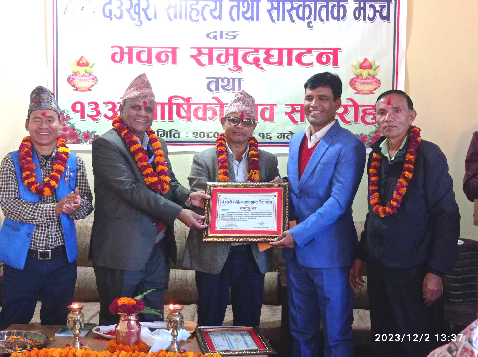 देउखुरी साहित्य तथा सांस्कृतिक मञ्च दाङले नेपाली गीतसङ्गीतको विकास र विस्तारको लागि निरन्तर अगाडि बढिरहेका सङ्गीतकार श्रेष्ठलाई मञ्चकाे आफ्नो १३औँ वार्षिकोत्सवको अवसरमा नगदसहित सम्मान गरेको हाे ।