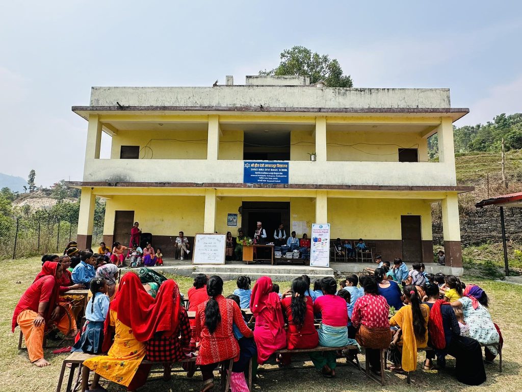 हिरादेवी आधारभूत विधालयमा इसिएलएफ नेपालद्वारा शैक्षिक सामग्री हस्तान्तरण