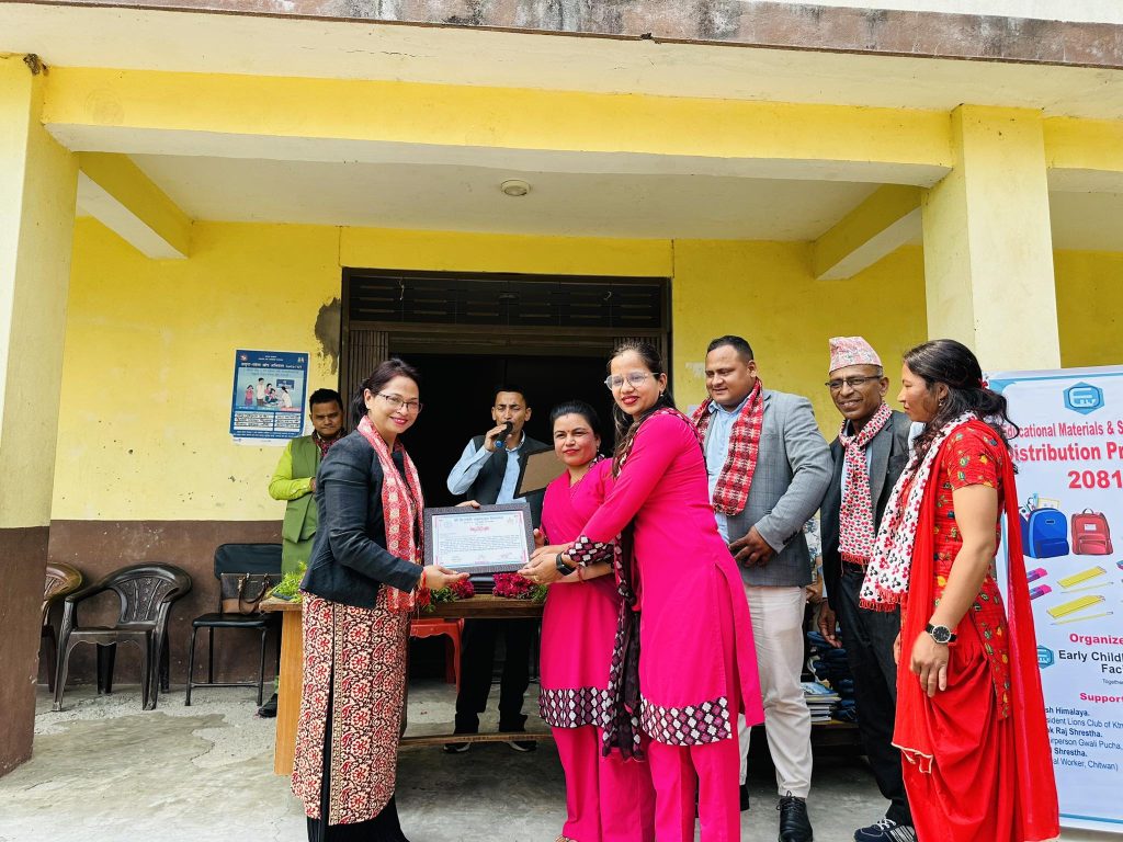 लायन्स क्लब अफ काठमाडाैं फेलाेसिपका अध्यक्ष राजेश हिमालयकाे संयाेजनमा इसिएलएफ नेपालका अध्यक्ष बन्दना एल श्रेष्ठ तथा इसिएलएफ नेपालका निर्देशक राजाराम महाजुले बालबालिकाहरूका लागि आवश्यक शैक्षिक सामाग्री (झोला, कापी, कलम)लगाएतका सामाग्री सहयाेग हस्तान्तरण गरेकाे क्लबका अध्यक्ष हिमालयले बताउनुभयाे ।