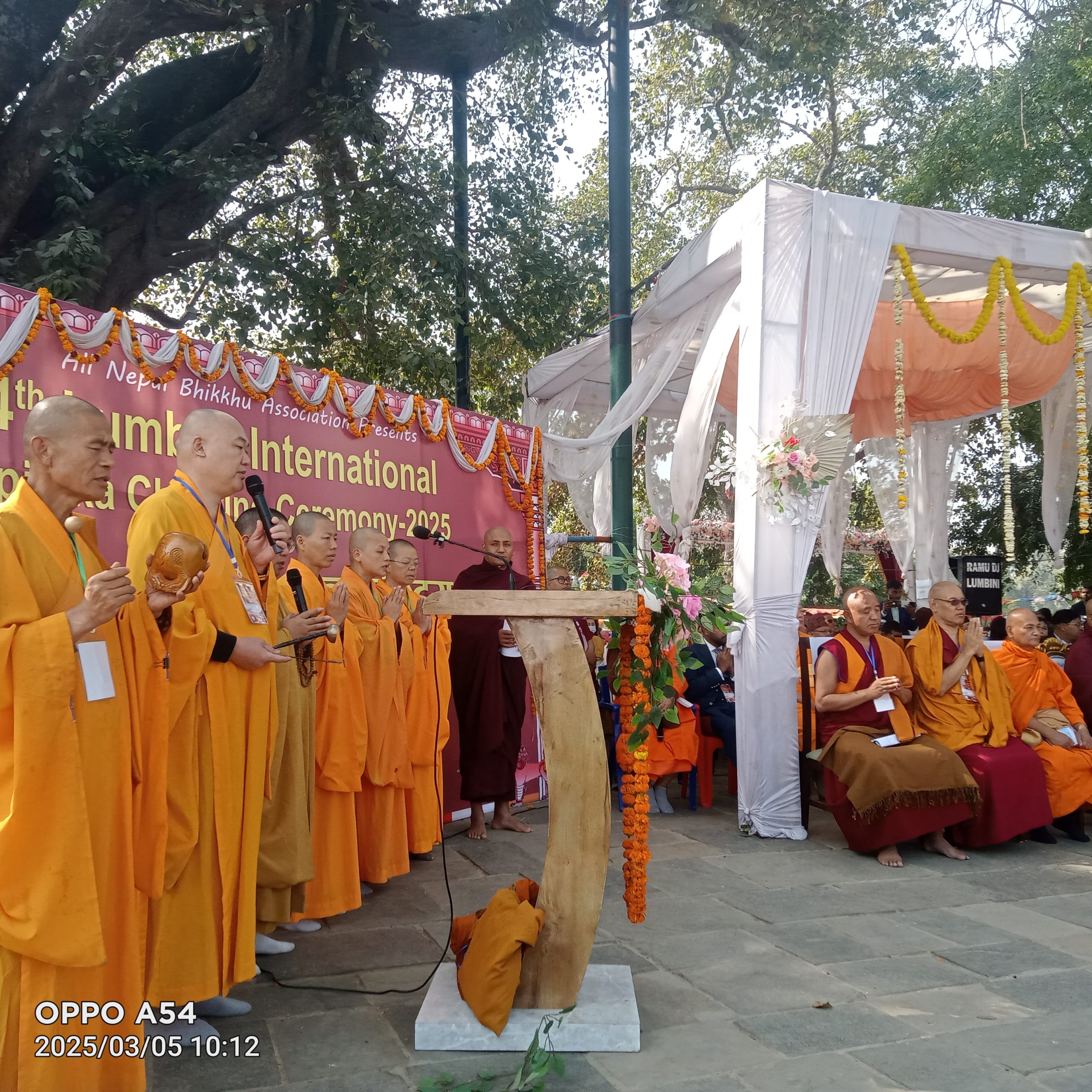 समारोहमा नेपाल, भारत, श्रीलङ्का, कम्बोडिया, थाइल्याण्ड, चीन, कोरिया, जापान लगायत १६ देशका करिब दुई हजार लामा, बौद्ध भिक्षु र भिक्षुणीहरूको सहभागिता रहेको छ। महासङ्घले धार्मिक पर्यटन प्रवर्द्धन गर्ने र बौद्ध साहित्यको प्रचारप्रसार गर्ने उद्देश्यले फागुन २० देखि २५ गतेसम्म मायादेवी मन्दिर परिसरमा यो कार्यक्रम आयोजना गरेको हो। उपप्रधानमन्त्री प्रकाशमान सिंह, लुम्बिनी विकास कोषका अध्यक्ष लाह्र्याक्याल लामा र महासङ्घका अध्यक्ष भिक्षु बोधिसेन महास्थविरले दीप प्रज्ज्वलन गरी कार्यक्रमको शुभारम्भ गरेका थिए।