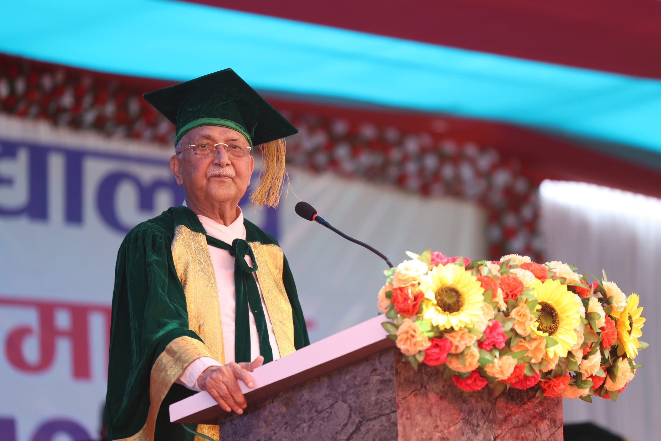 दीक्षान्त समारोहको कार्यक्रम सम्पन्न गरेपश्चात् प्रधानमन्त्री ओलीले कोशी प्रदेश सभामा सम्बोधन गरिरहनुभएको छ।