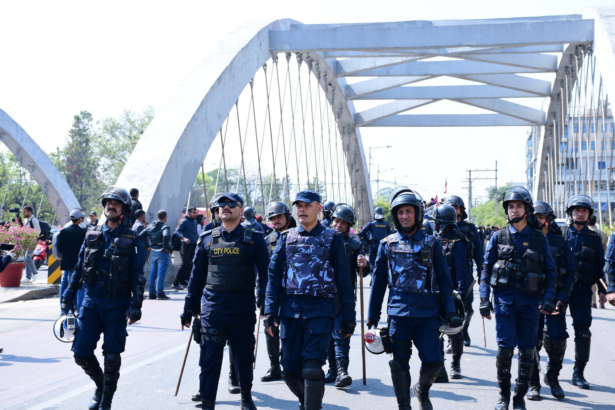 नेपाल प्रहरीले उपत्यकाको सुरक्षा व्यवस्था चुस्त बनाएको जनाएको छ। केन्द्रीय प्रहरी प्रवक्ता प्रहरी नायब महानिरीक्षक (डिआइजी) दिनेशकुमार आचार्यले काठमाडौँका विभिन्न स्थानमा हुने जुलुस र सभास्थलको सुरक्षा व्यवस्थालाई प्रभावकारी बनाइएको जानकारी दिनुभयो।