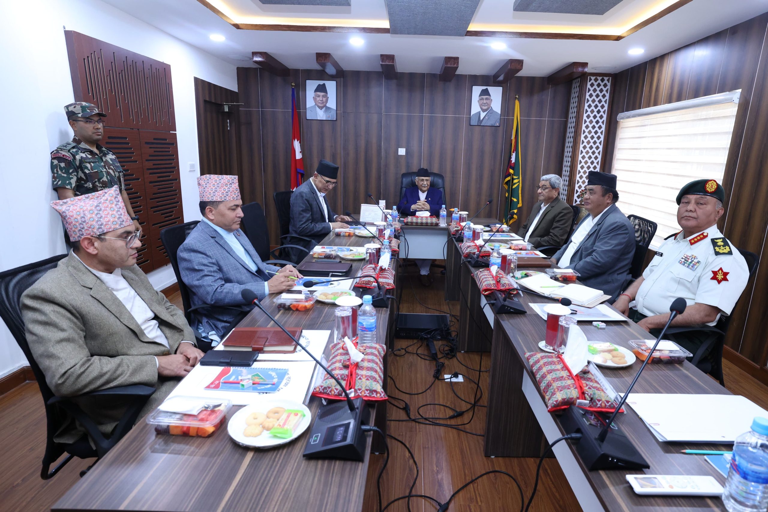 सिंहदरबारस्थित परिषद्को सचिवालयमा प्रधानमन्त्री एवम् परिषद्का अध्यक्ष केपी शर्मा ओलीको अध्यक्षतामा आज बसेको परिषद्को ३८औँ बैठकमा परिषद्का सदस्य उपप्रधानमन्त्री तथा अर्थमन्त्री, गृहमन्त्री, परराष्ट्रमन्त्री, रक्षामन्त्री, मुख्यसचिव, प्रधान सेनापति र रक्षासचिवको सहभागी हुनुहुन्थ्यो ।