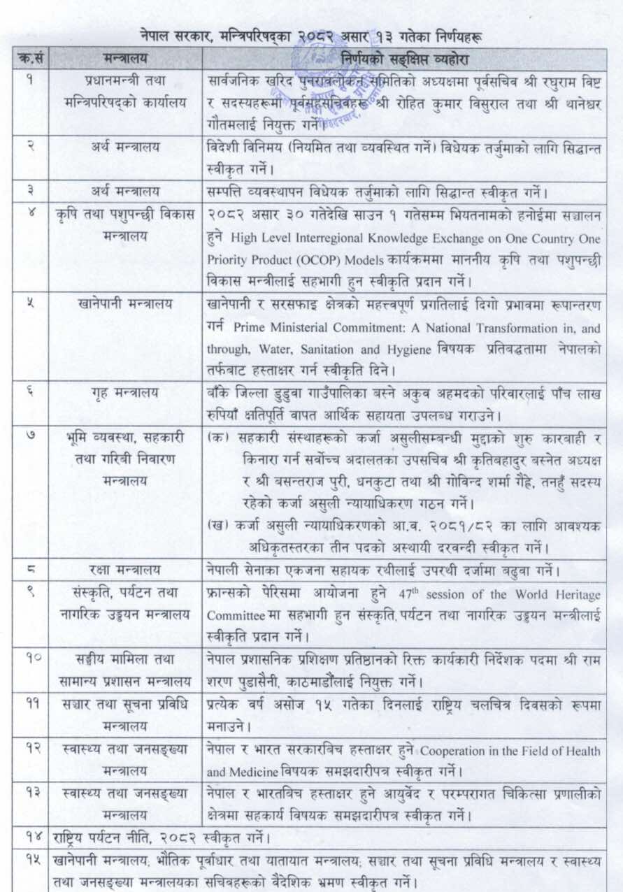मन्त्रिपरिषद्का महत्त्वपूर्ण निर्णय सार्वजनिक