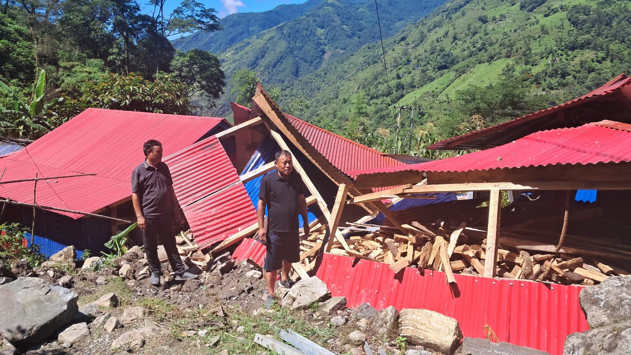 पहिरोमा ढुङ्गामाटोसहितको ठूलो ढिस्को खस्दा एउटा घर पूर्णरूपमा क्षति भएको छभने एउटा घरमा आंशिक क्षति भएको हो ।