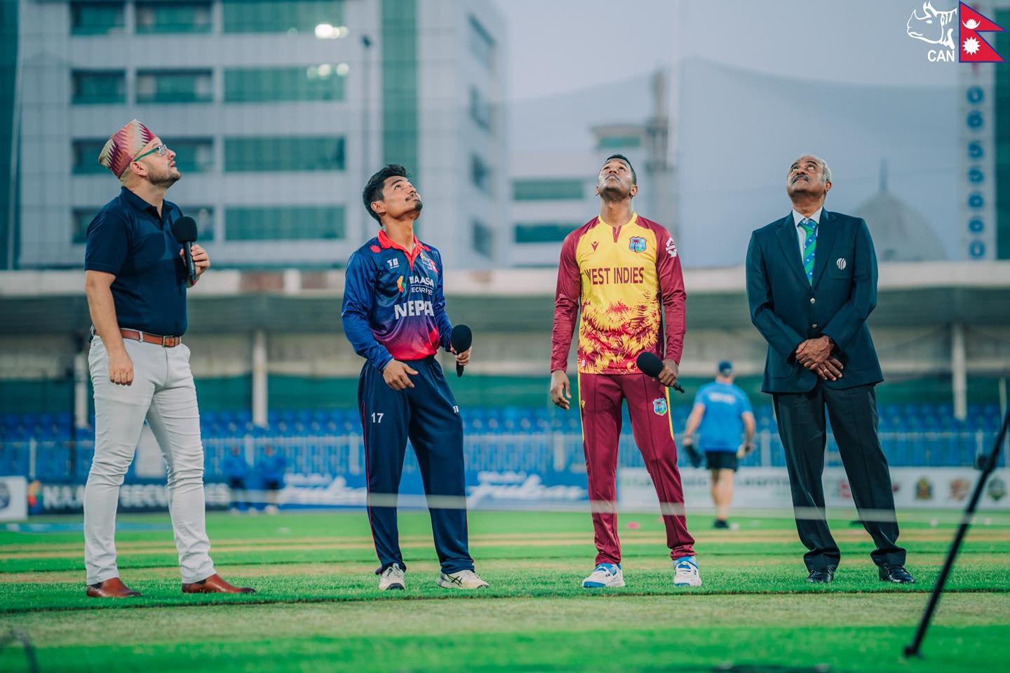 शारजाहा क्रिकेट रङगशालामा वेस्ट इन्डिजले टस जितेर फिल्डिङ नै रोजेपछि नेपालले लगातार तेस्रो खेलमा पहिला ब्याटिङ गर्न लागेको हो।