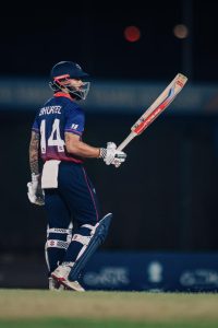 यसअघि, नेपालका लागि प्रारम्भिक ब्याट्सम्यान कुशल भुर्तेलले ५६ बलमा तीन चौका र तीन छक्कासहित सर्वाधिक ६६ रन बनाएका थिए । दीपेन्द्रसिंह ऐरी २० रनमा रनआउट भए । गुल्शन झाले ६ बलमा २० रनको निर्णायक पालि खेले । गुलसनले नवीनराज राजेन्द्रनले फालेको १९औं ओभरको अन्तिम तीन बलमा लगातार तीन छक्का प्रहार गरेका थिए । सोही ओभरको सुरुका दुई बलमा भुर्तेलको ब्याटबाट दुई चौका आएको थियो । सो ओभरमा नेपालले २७ रन बटुलेको थियो । अन्तिम ओभरमा गुलसन र भुर्तेल दुवै आउट भए ।