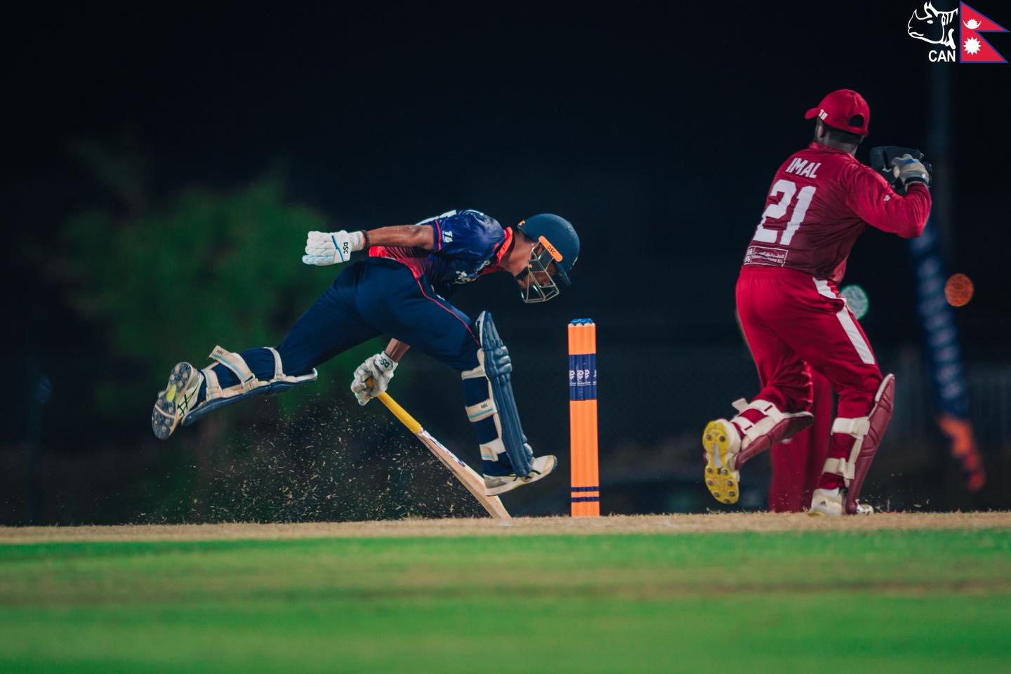 ओमानको अल अमिरातस्थित ओमान क्रिकेट एकेडेमी टर्फ १ मा नेपालका लागि कप्तान रोहित पौडेलले ४१ बलमा सर्वाधक ५८ रन बनाए । उनको पालिमा सात चौका र एक छक्का सामेल थियो । रोहितले चौथो विकेटका लागि दिपेन्द्रसिंह ऐरीसँग गरेको ६२ रनको साझेदारीले नेपालको पालि राम्रो भएको हो ।
