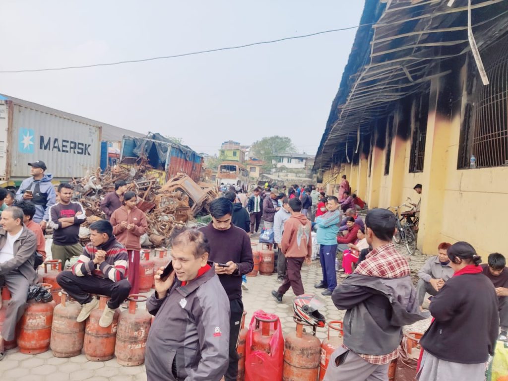 नेसनल ट्रेडिङ्ग लिमिटेड टेकुमा विहानदेखि लाइनमा बसेका उपभोक्ताहरू रित्ताे सिलिण्डर सार्दै केहि दिनदेखि ग्यास नपाएकाे गुनासाे ब्यक्त गर्छन् । केही उपभोक्ताहरू त अझै ग्यास नपाएर बाहिरकाे खाना खाइरहेकाे दुखेसाे पाेख्छन् ।