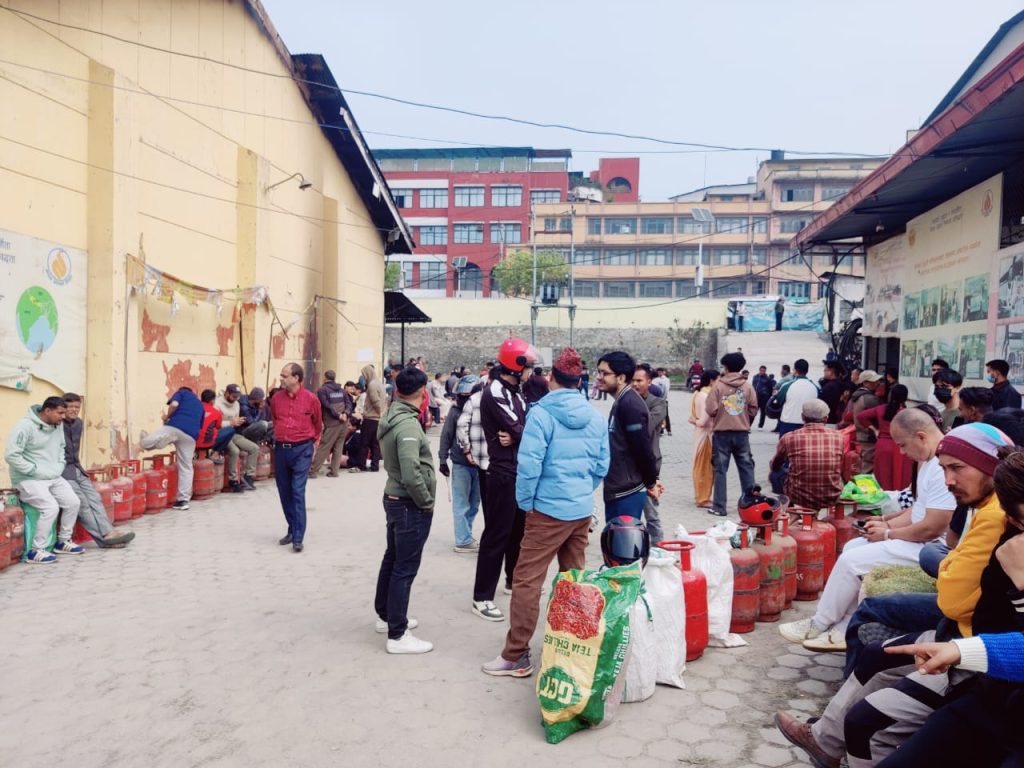आजदेखि बजारमा आधा सिलिन्डर ग्यास वितरण गर्ने भनिएपनि नेशनल ट्रेडिङमा यस्ताे छ उपभोक्ताकाे लाइन