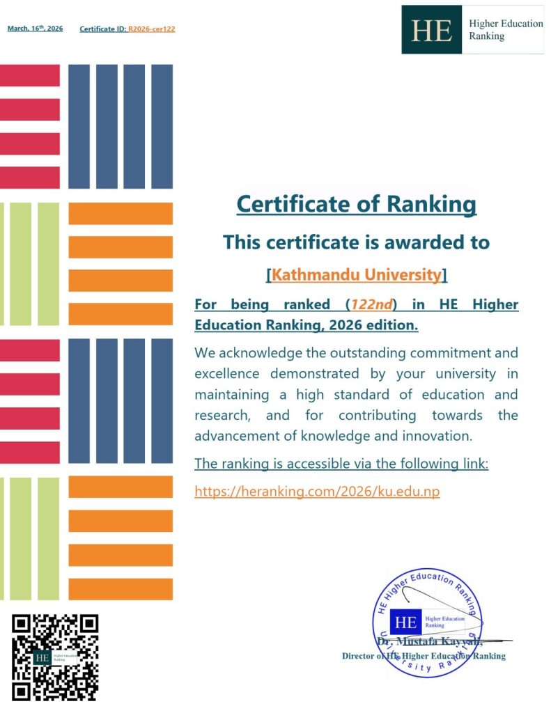 अमेरिकाको ‘एचई उच्च शिक्षा र्याङ्किङ’ मा काठमाडौँ विश्वविद्यालय १२२ औँ स्थानमा