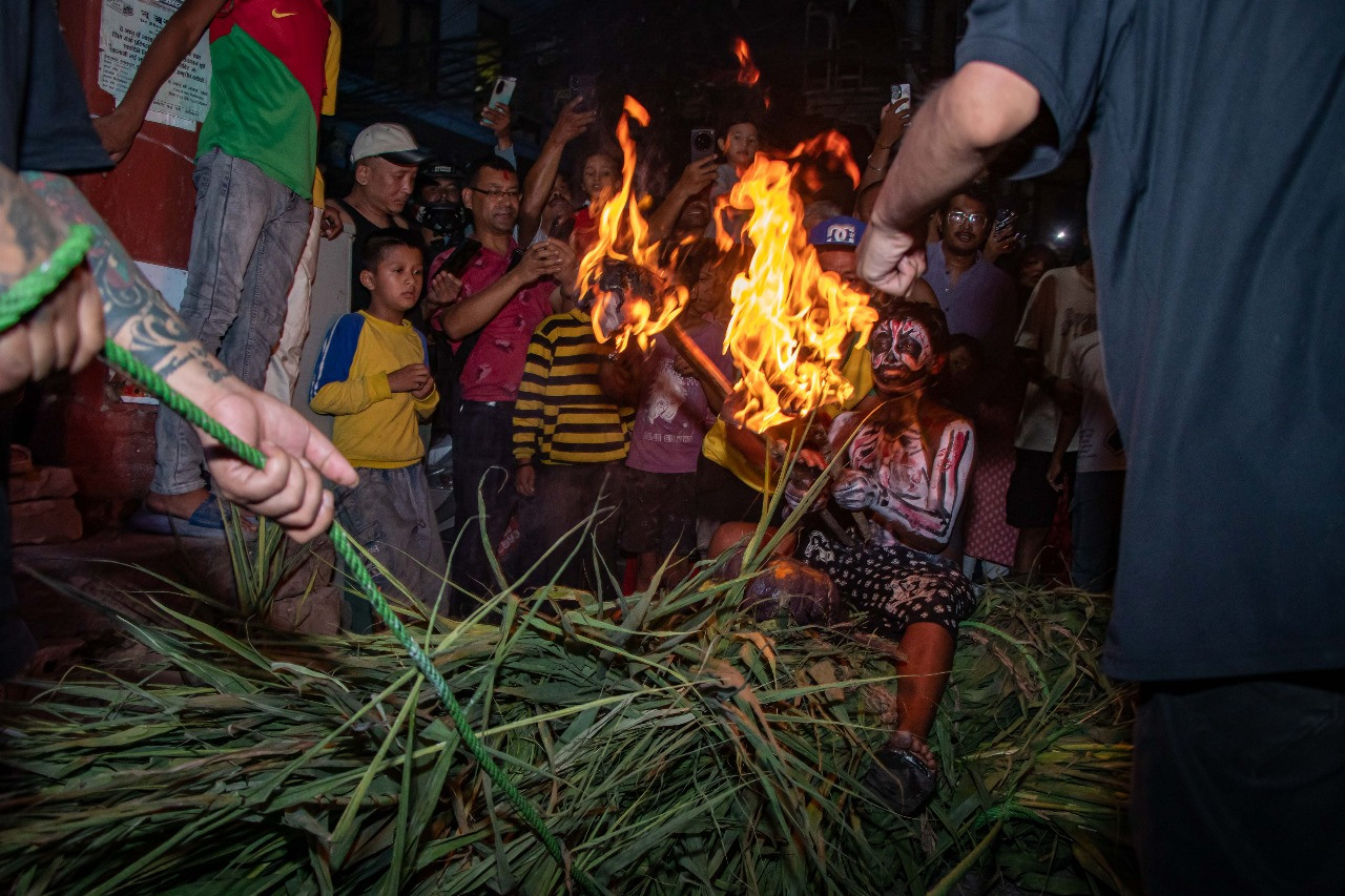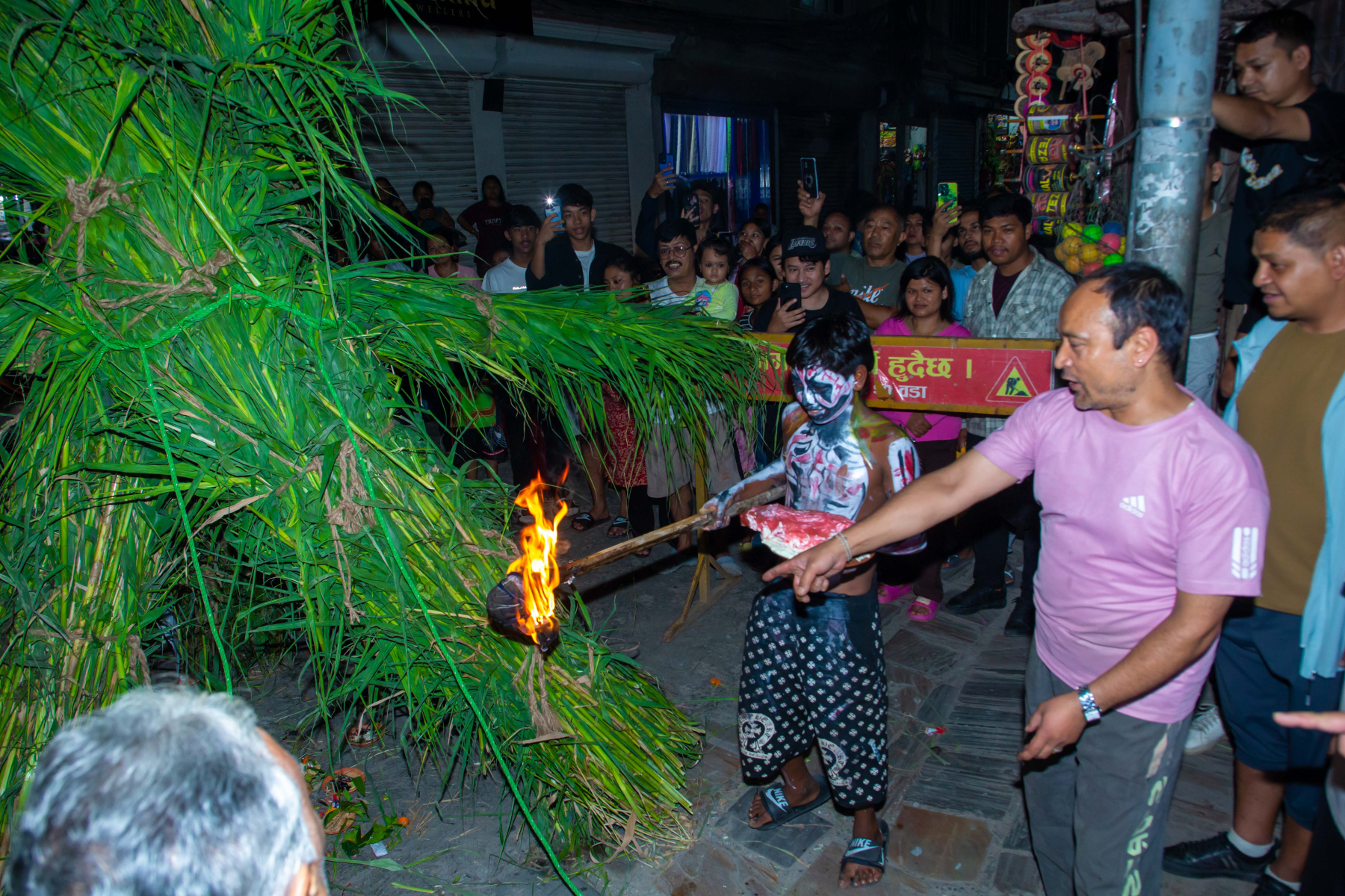 कार्तिक नाचको अन्तिम दिन दधि लिला (धौः ग्वप तस्छ्याई गु)